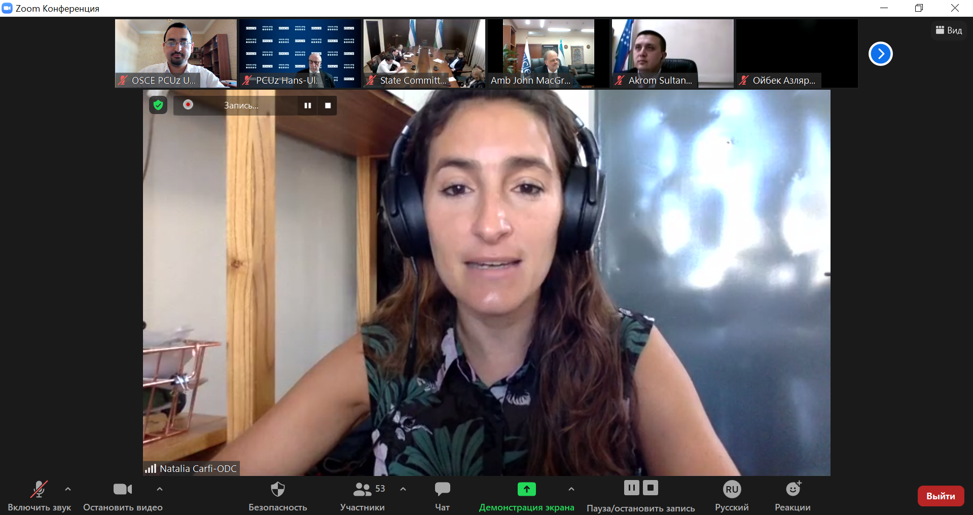 Natalia Carfi, Acting Executive Director, Open Data Charter delivering a presentation on Principles of the Open Data Charter in Action through zoom platform, Tashkent, 18 February 2021.