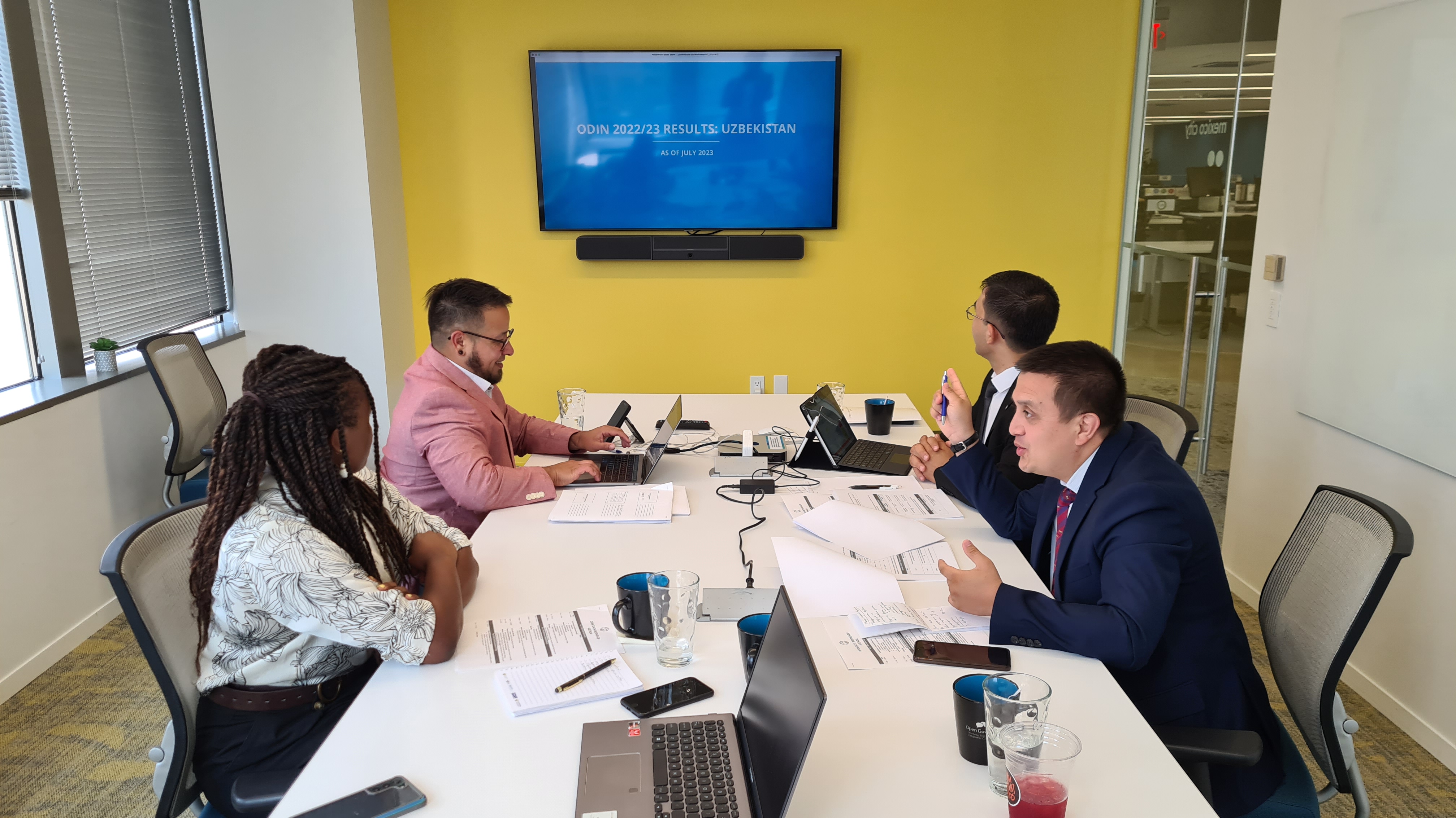 Staff from the Statistics Agency of the Republic of Uzbekistan during a meeting with Open Data Watch on the country's latest open data results, Washington D.C., 12-14 July 2023.