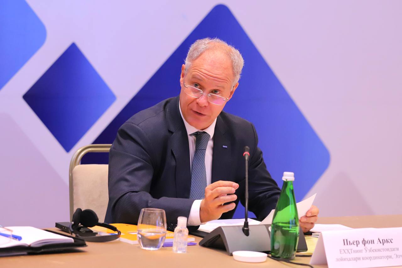 Посол Пьер фон Аркс, Координатор проектов ОБСЕ в Узбекистане, обращается к участникам официальной церемонии, посвященной ратификации Конвенции о правах инвалидов Узбекистаном, Ташкент, Узбекистан, 28 июля 2021 года.