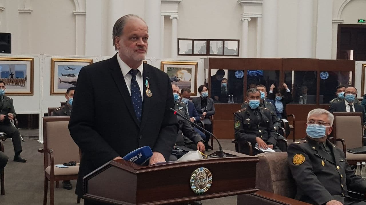 Elchi Jon MakGregor 2020 yil 4-5 noyabr kunlari O'zbekiston Qurolli Kuchlar akademiyasida bo'lib o'tgan xalqaro ilmiy konferensiya ishtirokchilarga murojaat qilmoqda