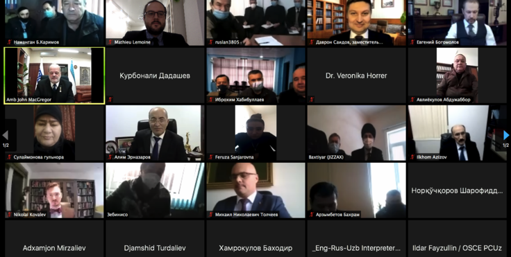 Elchi Jon MakGregor, YXHTning O'zbekistondagi loyihalari koordinatori, O'zbekiston Respublikasi Advokatlar palatasini institutsional rivojlantirish bo'yicha trening ochilishida ishtirokchilarga murojaat qilmoqda, Toshkent, 2020-yil 18-noyabr.