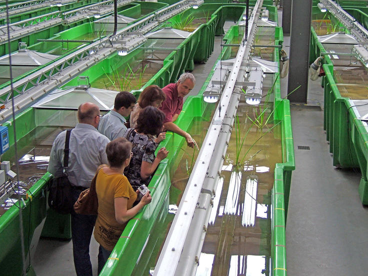 An expert from the Federal Environmental Agency in Berlin-Marienfelde shows to a delegation of the State Nature Protection Committee of Uzbekistan an artificial stream and pond system, one of the largest such systems in the world, Berlin, 6 July 2009.