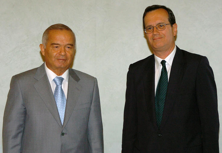 OSCE Secretary General, Marc Perrin de Brichambaut (right), met with President of Uzbekistan Islam Karimov during his visit to Tashkent, 2005.