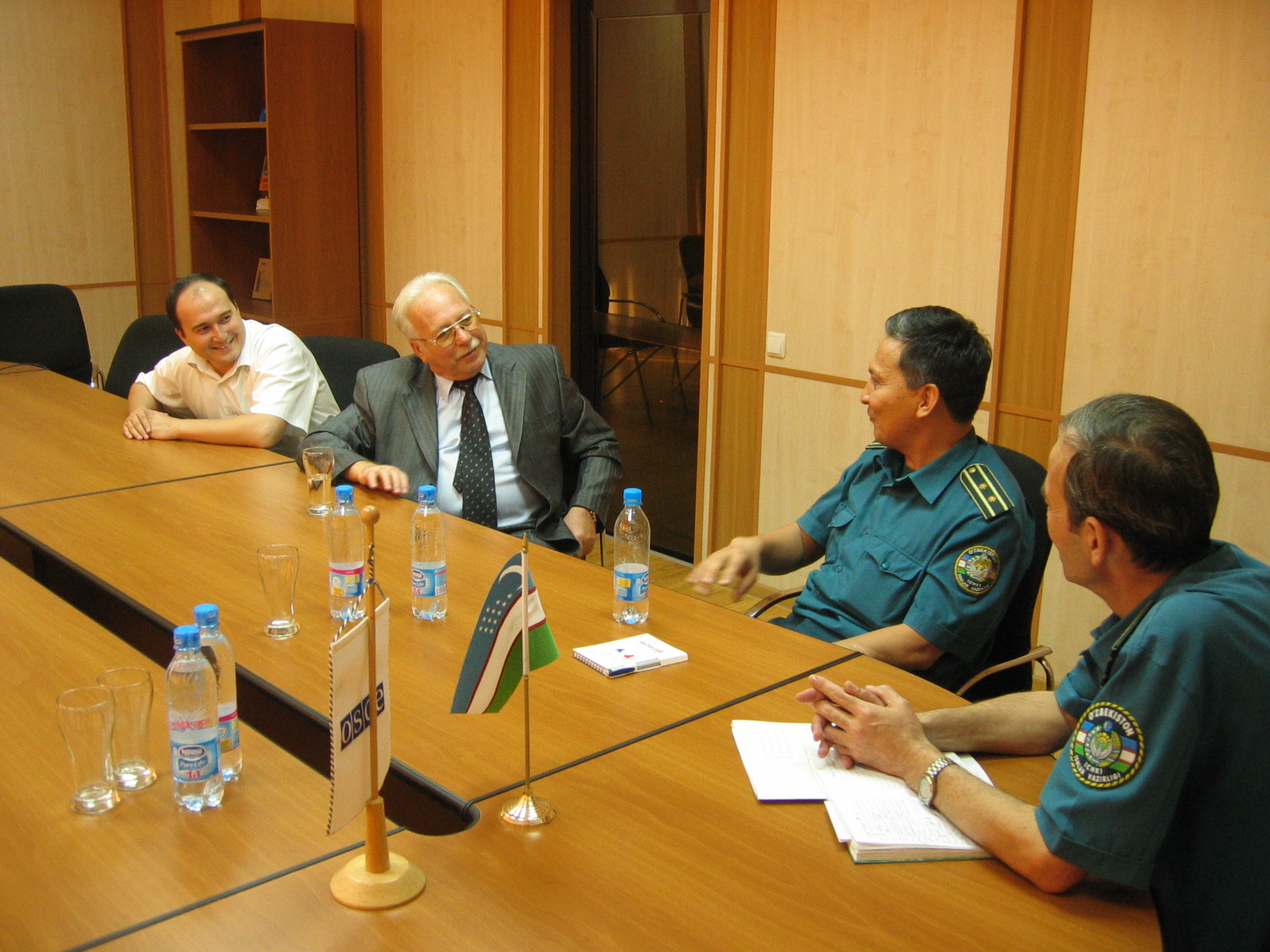 The OSCE Project Co-ordinator in Uzbekistan, Ambassador Istvan Venczel (second left), visits the OSCE Centre of Innovative Pedagogic Technologies at the Uzbek Police Academy, July 2008.